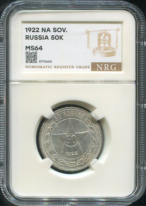 50 копеек 1922 (в слабе) (ПЛ)