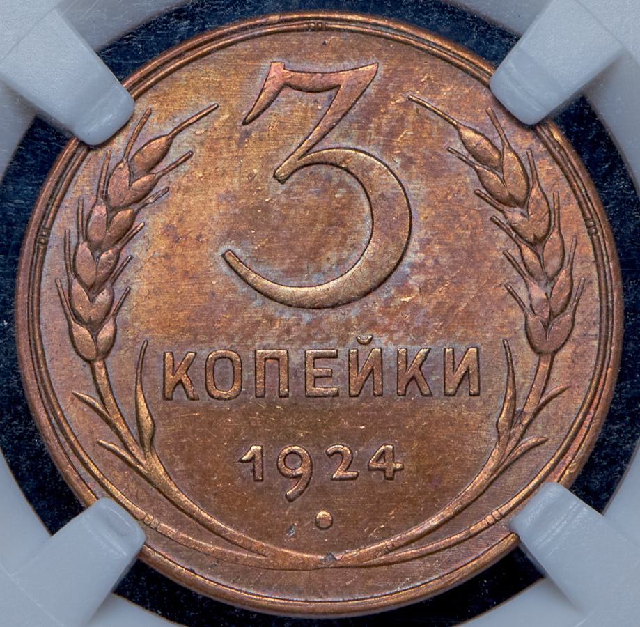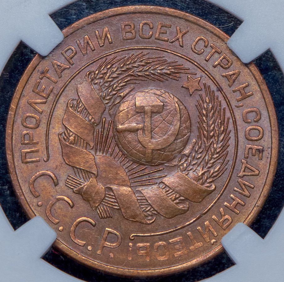 В слабе NRG.Соосность сторон 40 градусов. По мнению Аукционного Дома "Александр" сохранность монеты MS 62.
