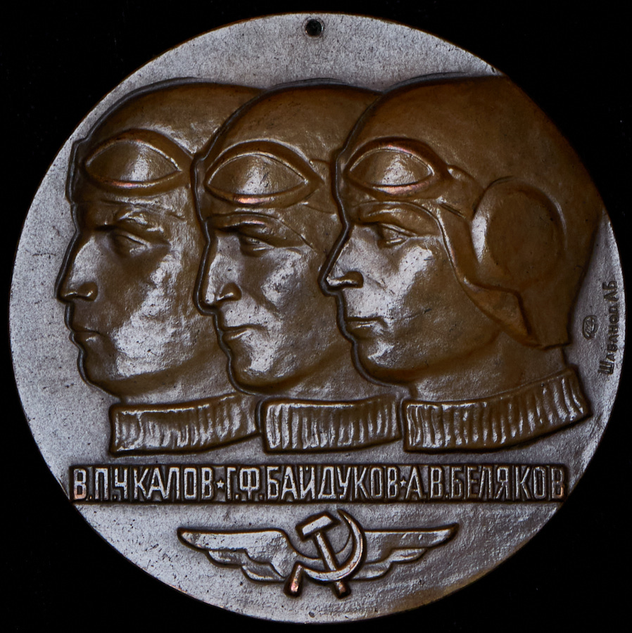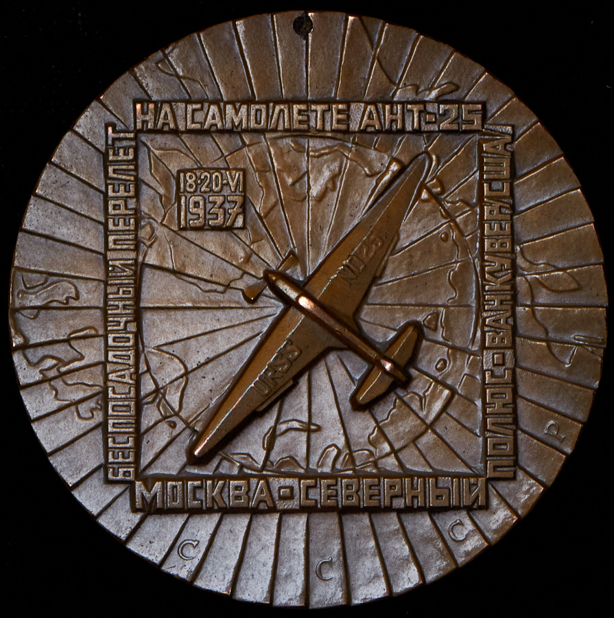 Медаль в память 40-летия беспосадочного перелета В.П. Чкалова, Г.Ф. Байдукова и А.В. Белякова на самолете АНТ-25 по маршруту Москва - Северный полюс - Ванкувер.