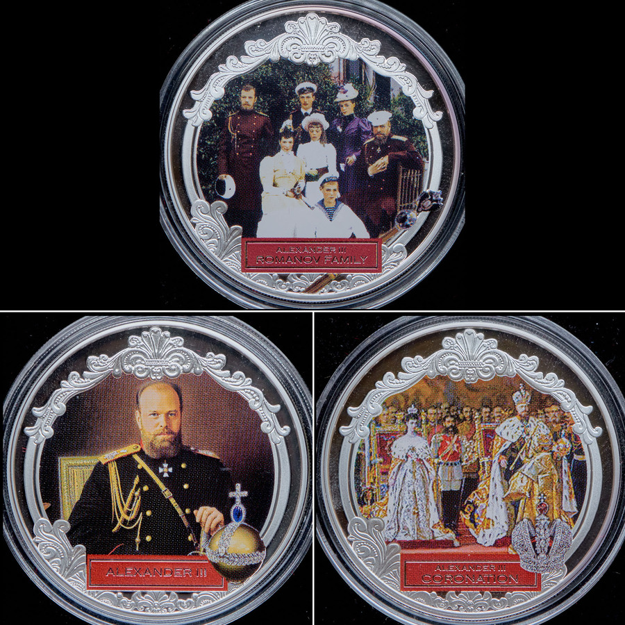 Набор из 3-х монет 2 доллара 2012 "Александр III - Семья Романовых" (Фиджи)