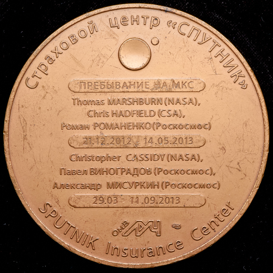 Медаль Международная космическая станция МКС-35 16.03.2013-14.05.2013. «Страховой центр «Спутник».