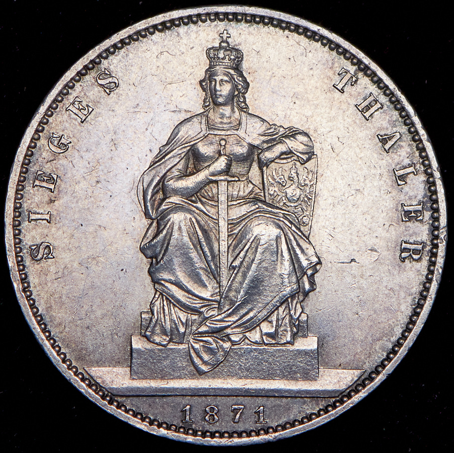 Чеканена в честь победы над французами в франко-прусской войне. Последний талер Пруссии.