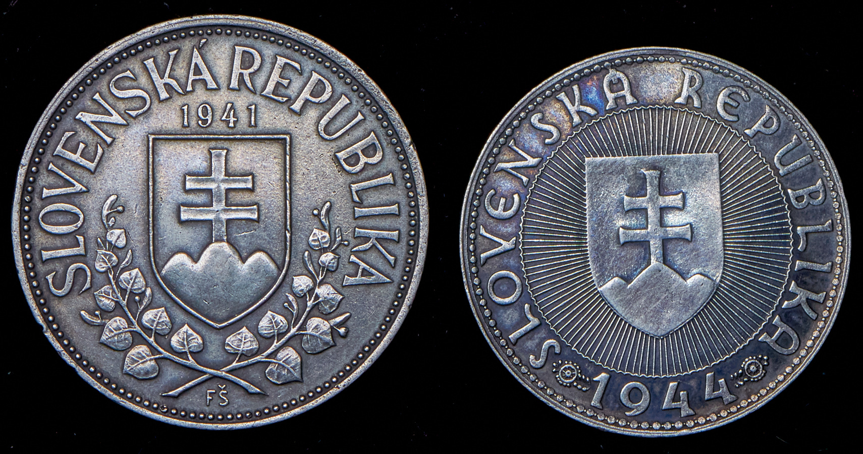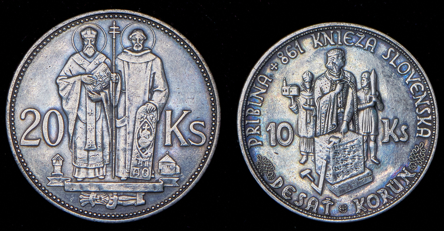 10 крон 1944, 20 крон 1941.