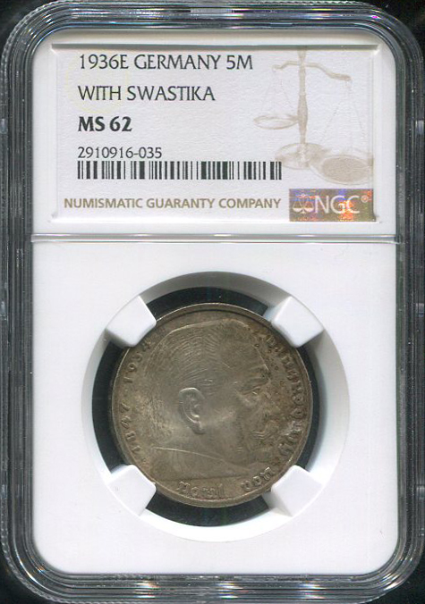 5 марок 1936 (Германия) (в слабе) Е