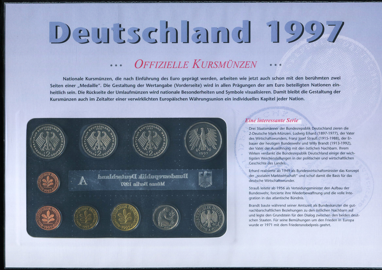Набор из 10-ти монет 1997 (ФРГ) (в п/у)