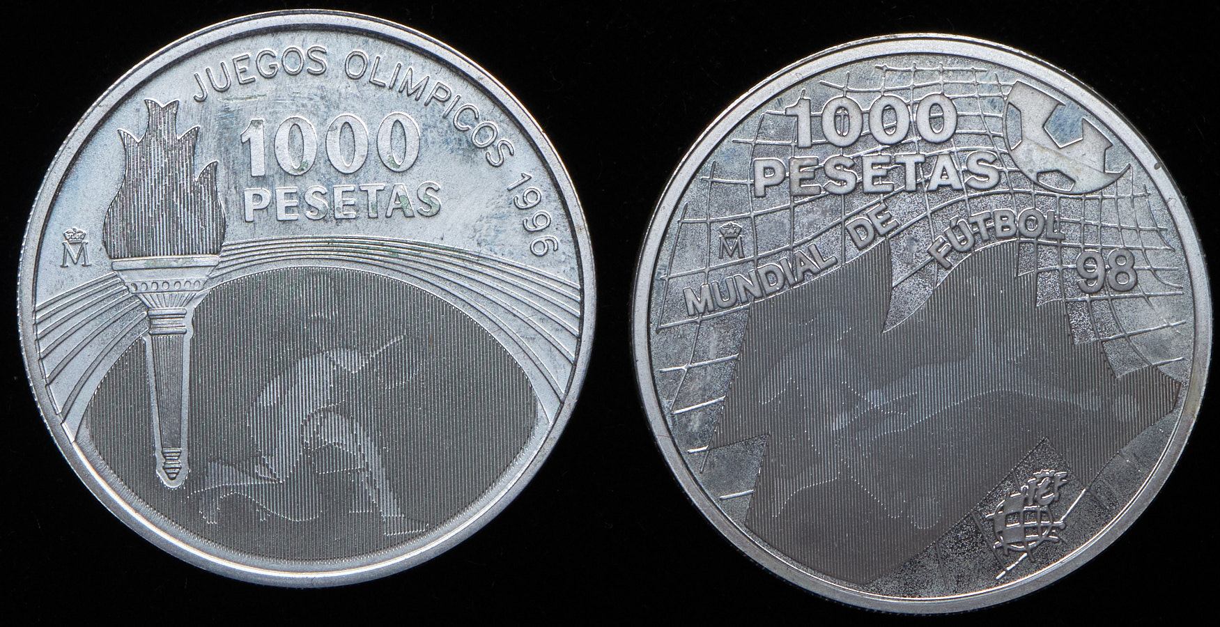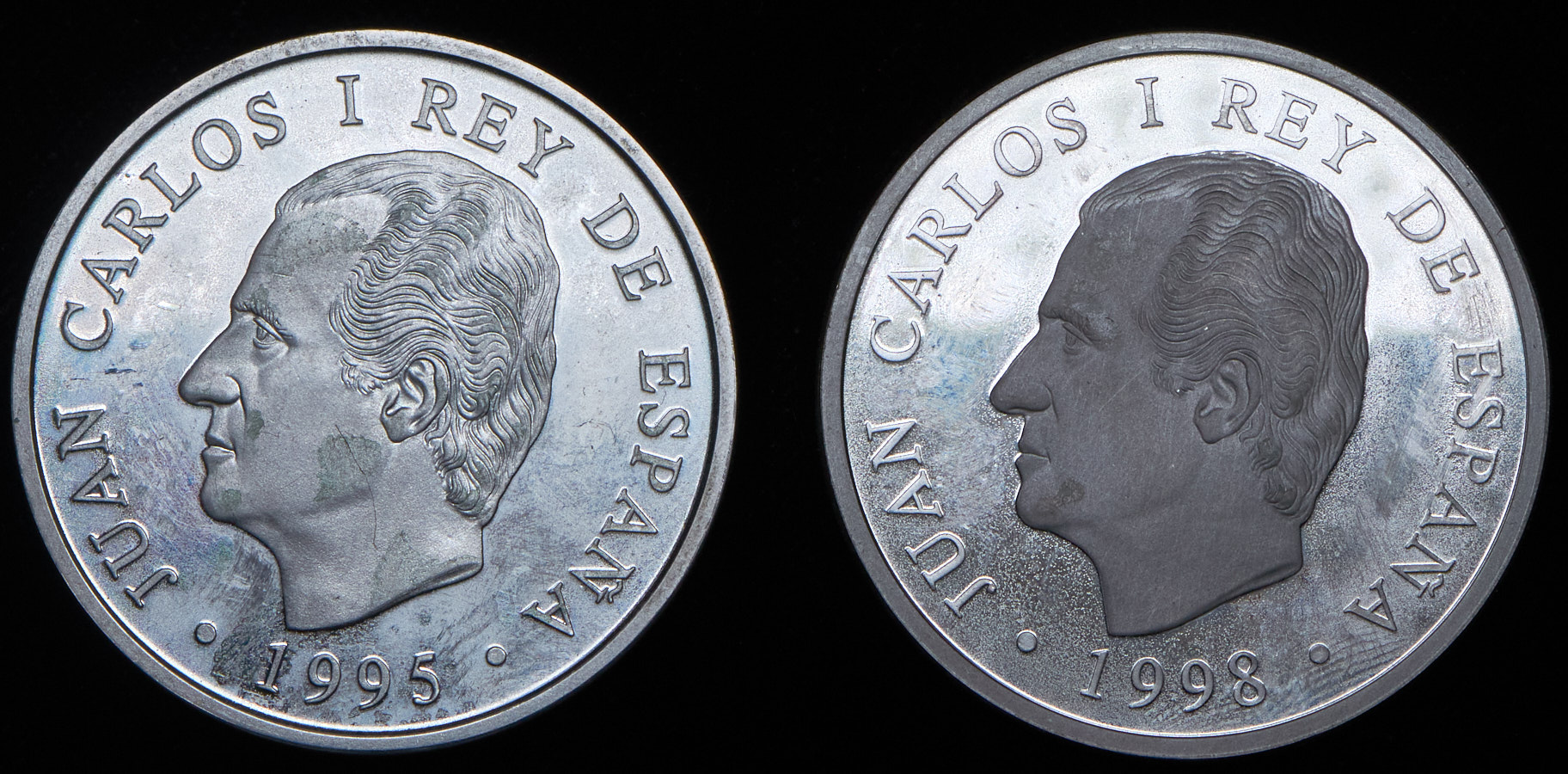 1000 песет 1998, 1000 песет 1995.Следы небрежного хранения.