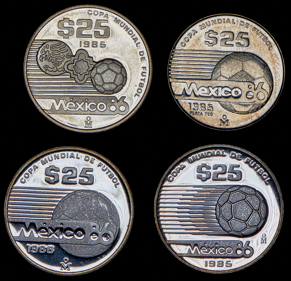 Набор из 4 монет 25 песо 1985 "Чемпионат мира по футболу 1986 года в Мексике" (Мексика)
