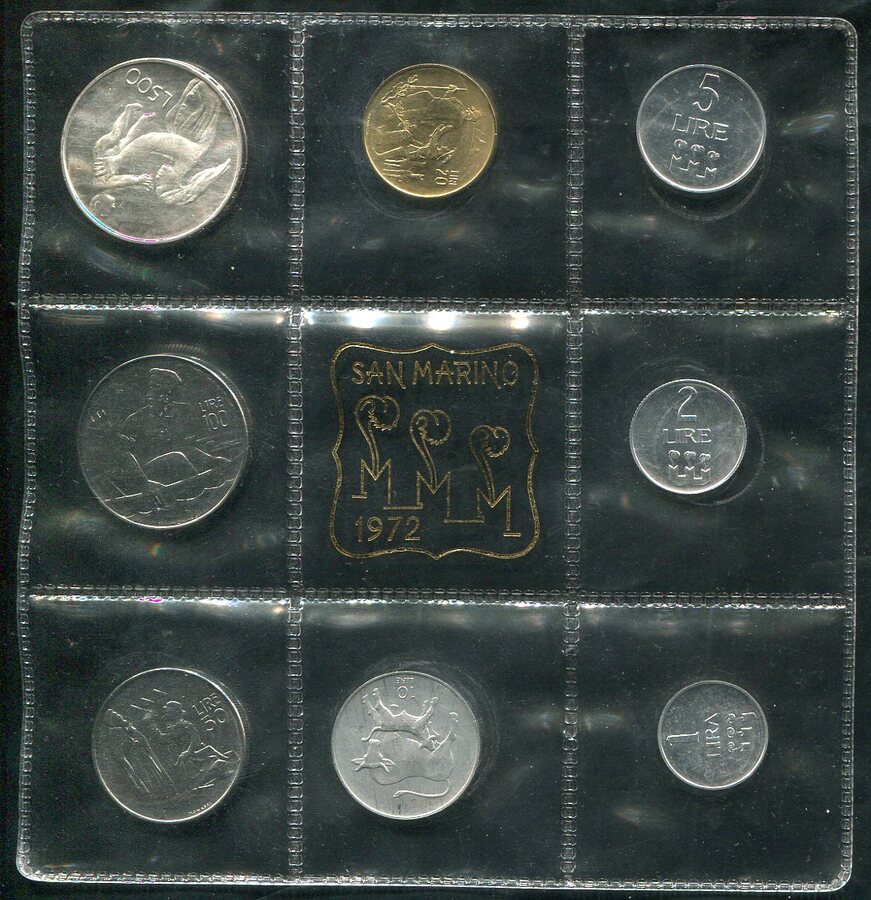 Годовой набор из 8 монет 1972 (Сан Марино) (в запайке)