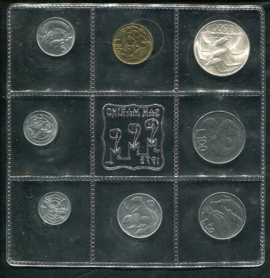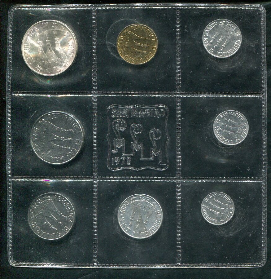 Годовой набор из 8 монет 1975 (Сан Марино) (в запайке)