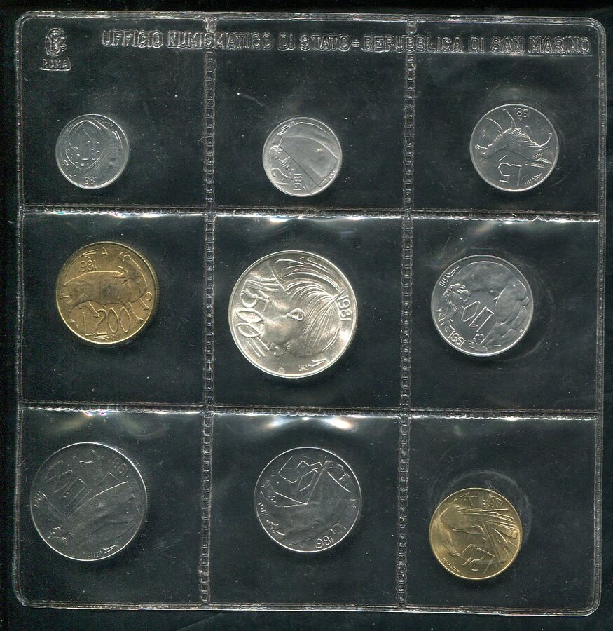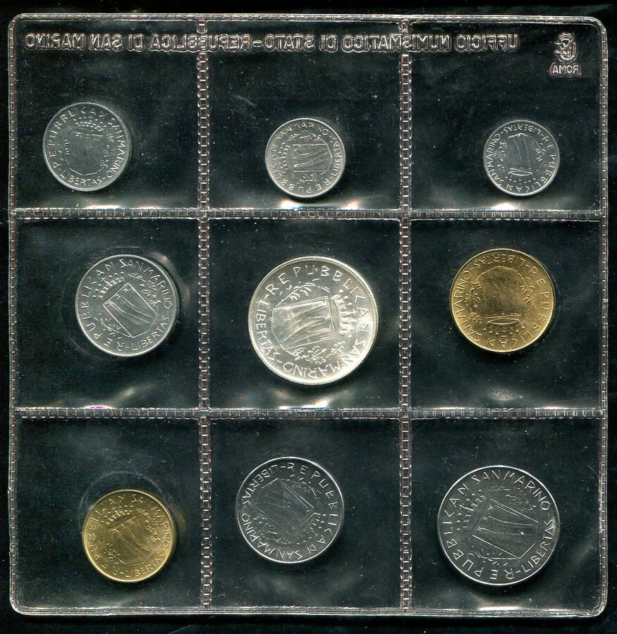 Набор из 9 монет 1991 (Сан Марино) (в запайке)