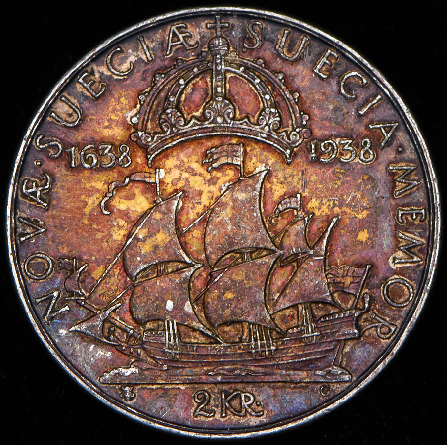 2 кроны 1938 "300 лет поселению Делавэр" (Швеция)