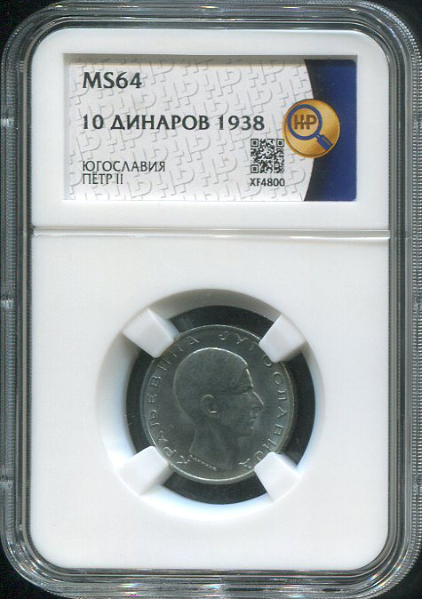 10 динаров 1938 (Югославия) (в слабе)