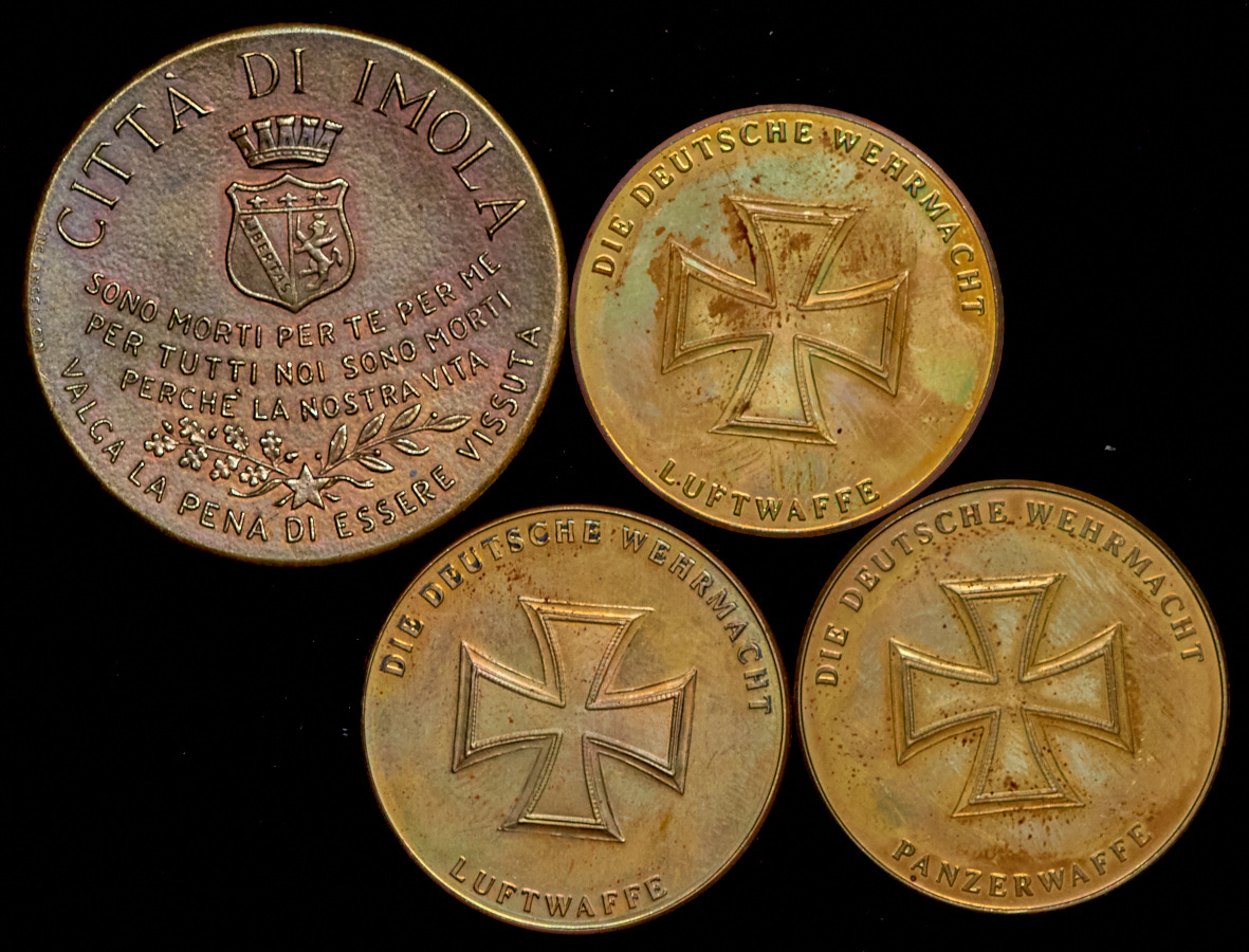 Диаметр 3-х жетонов германии - 30 мм. Жетон "Citta di Imola" - 38 мм.