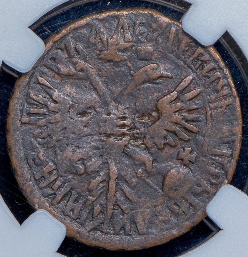 Перечекан из петровской монеты с хорошо сохранившимися следами исходной монеты.В слабе ННР.