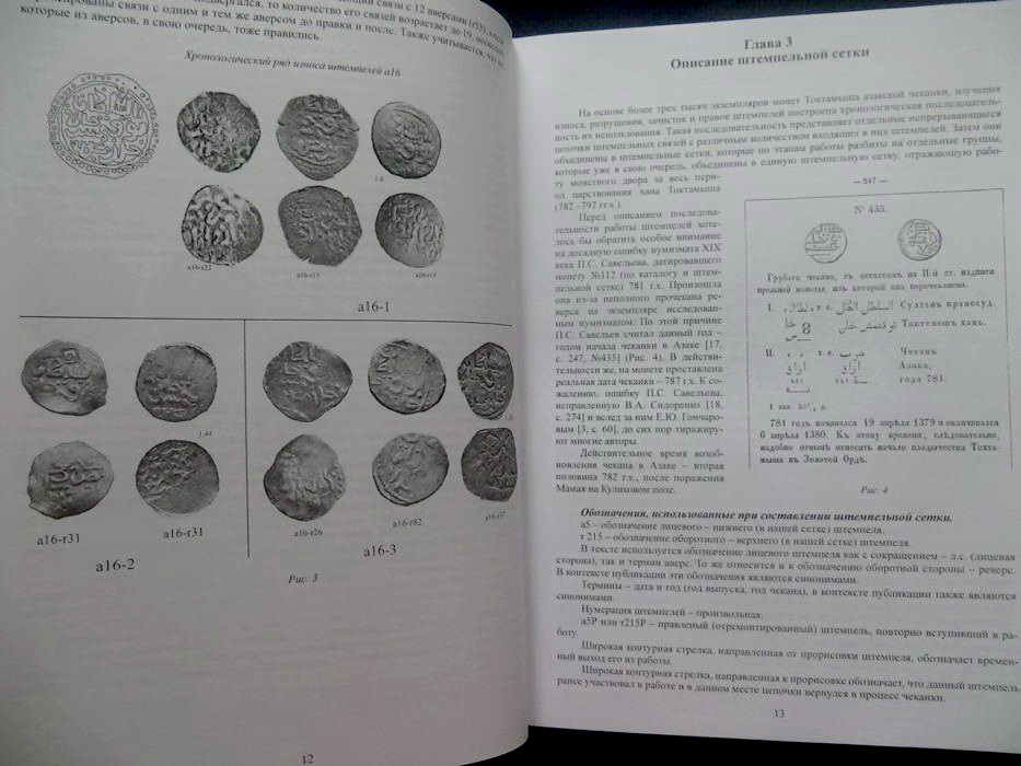 Настоящее исследование посвящено работе монетного двора Азак (ныне - Азов) в период правления золотоордынского хана Токтамыша. В результате изучения массива из порядка 8000 монет был составлен каталог монет Азака за период с 782 г.х. / 1380 г. по 797 г.х. / 1395 г. Построена сетка штемпельных связей для всей известной эмиссии монетного двора Азака, созданы точные компьютерные прорисовки всех выявленных штемпелей (121 штемпель лицевой стороны и 210 штемпелей оборотной стороны; всего каталогизировано 450 монет). Выявлены монеты с указанием этого же места чеканки - «Азак», но чеканенные на других монетных дворах. Па основе комплексного изучения продукции монетного двора Азака было установлено время чеканки первых вы¬пусков монет рассматриваемого периода, прослежено продолжение эмиссии в последующие годы и ее завершение, связанное с разграблением города войсками Тамерлана. Рассмотрены вопросы динамики активности работы двора в различные периоды, а также обсужден ряд других аспектов, присущих нумизматическому исследованию. Издание адресовано нумизматам, историкам-медиевистам, музейным работникам и коллекционерам ордынских монет.