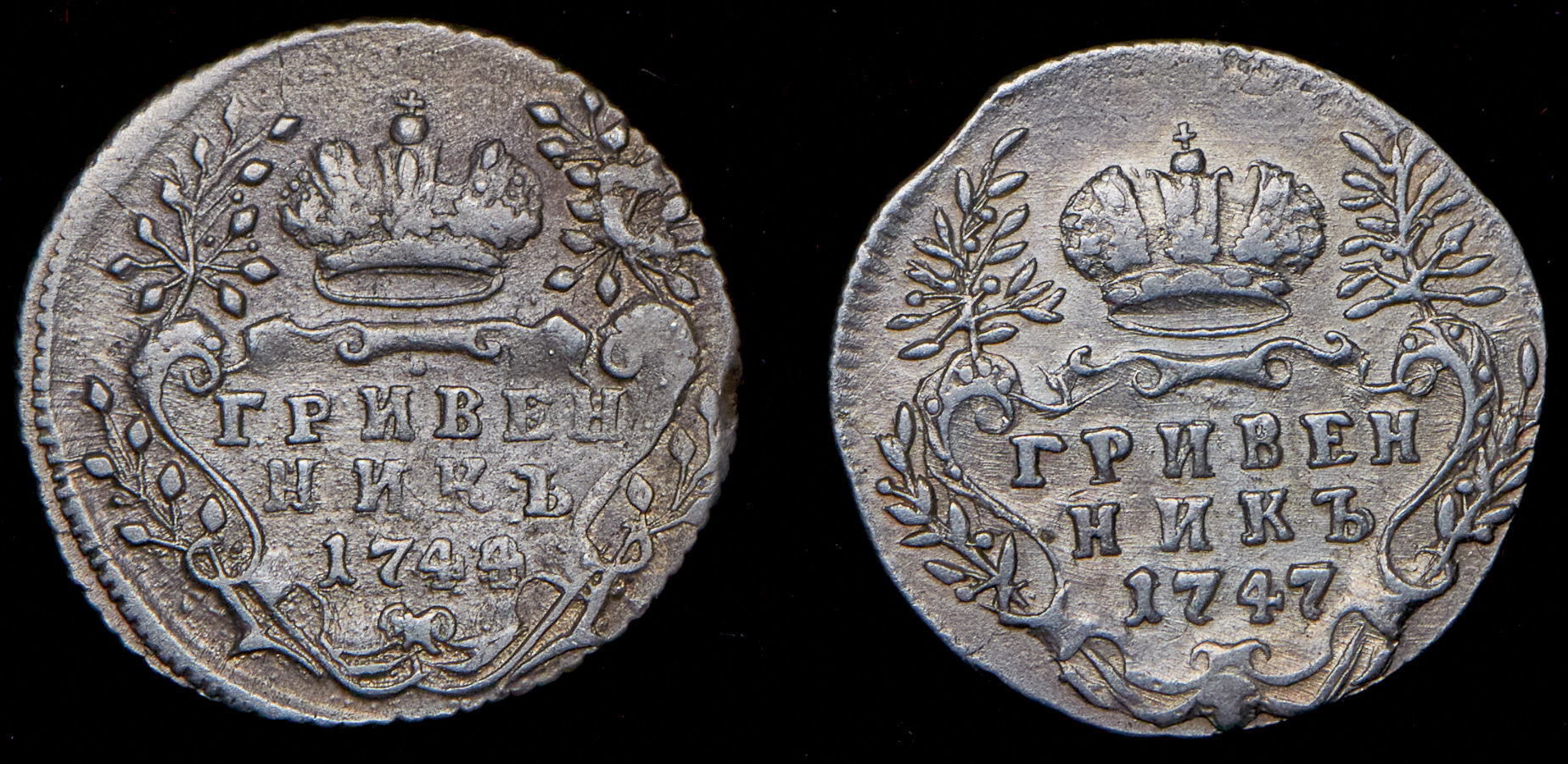 Набор из 2 сер. монет Гривенник 1744, 1747