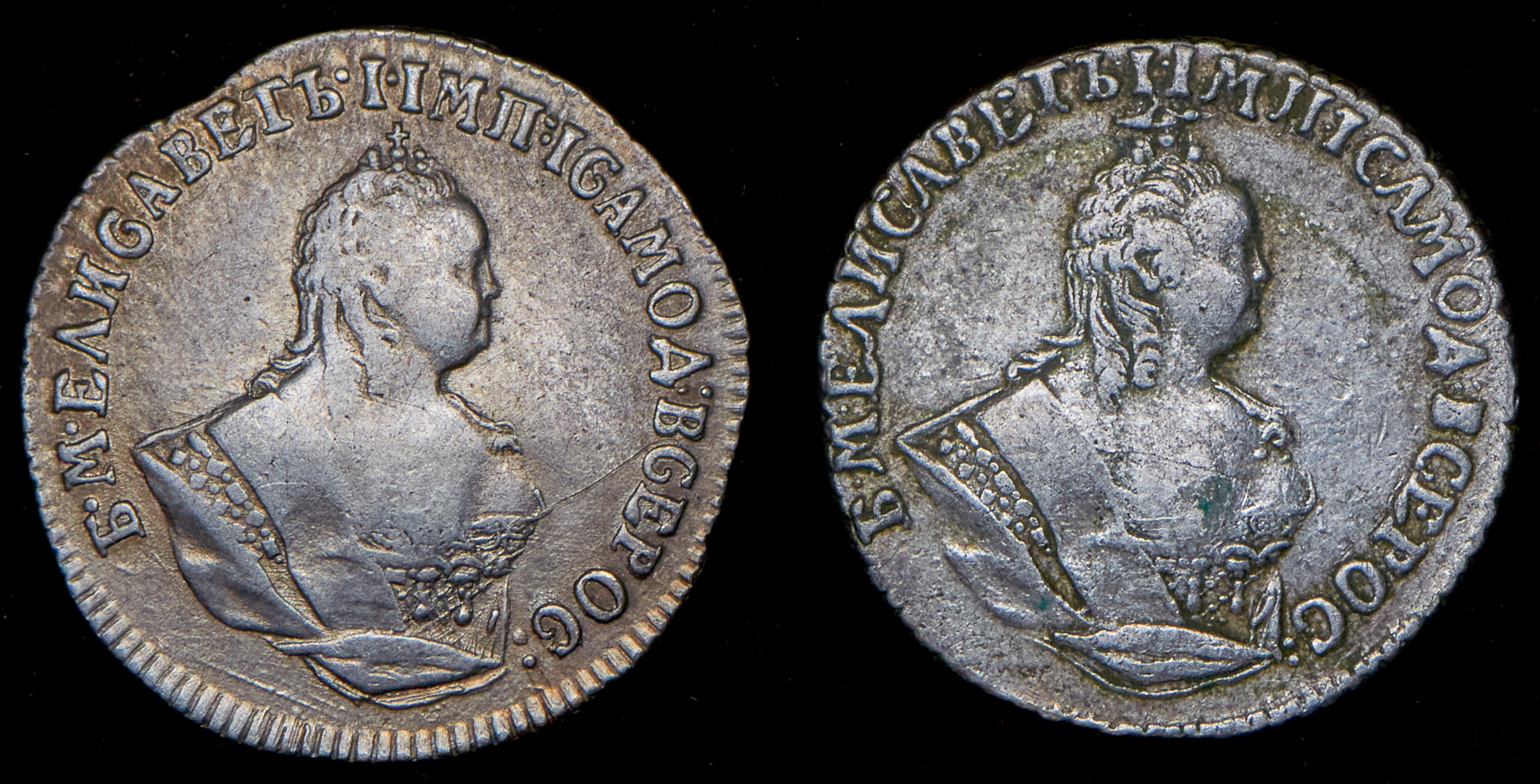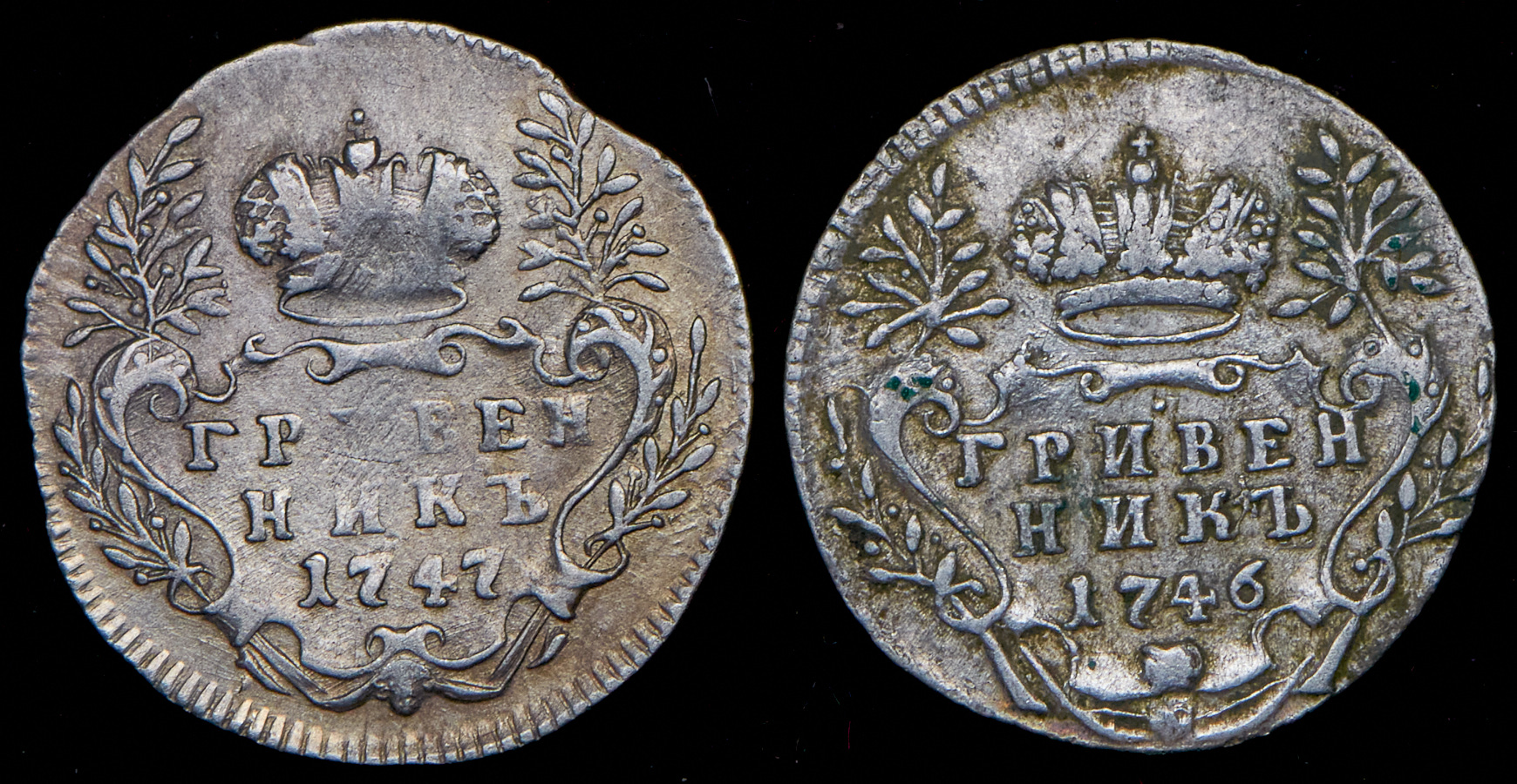 Набор из 2 сер. монет Гривенник 1746, 1747