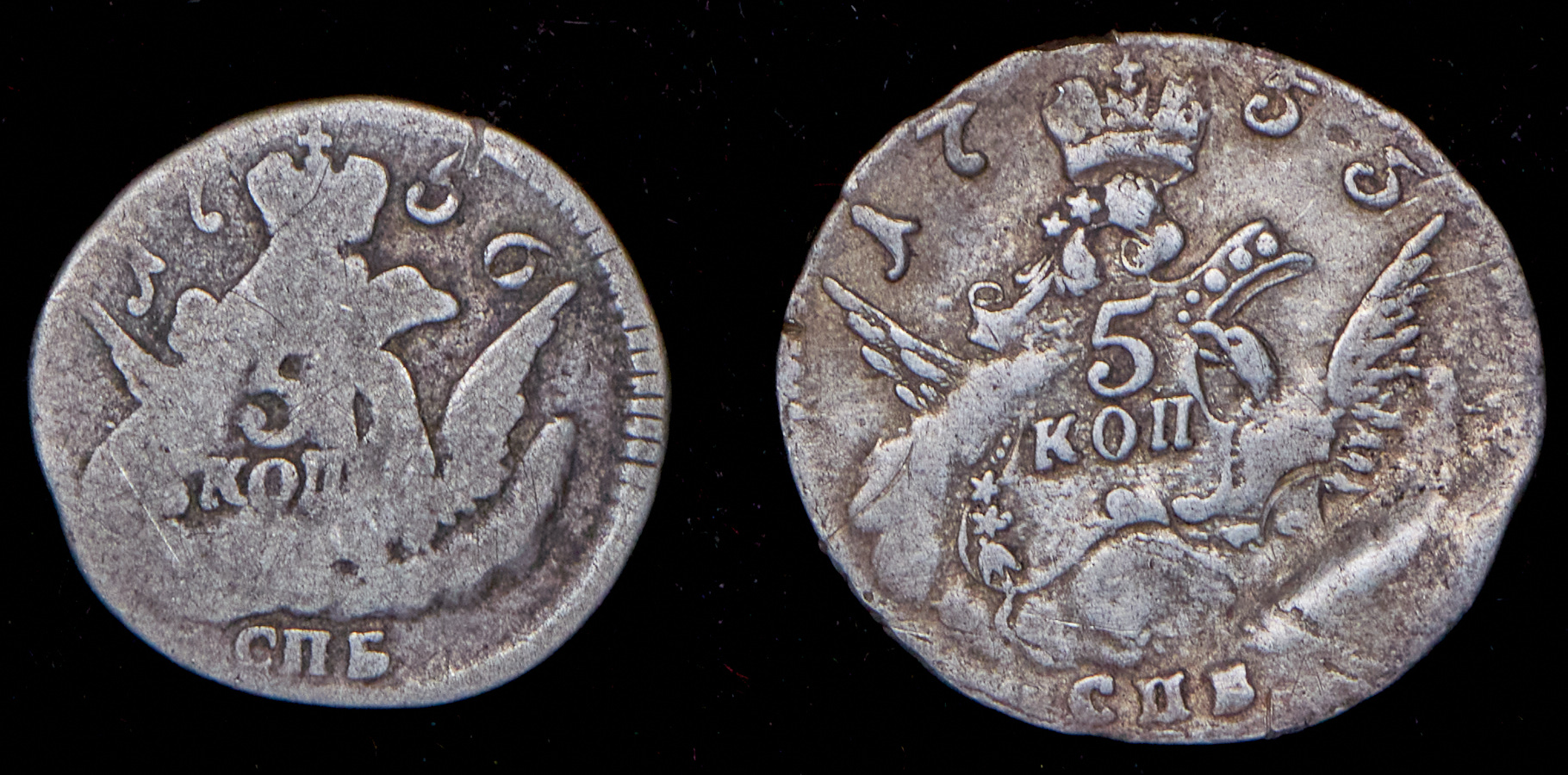 Набор из 2 сер. монет 5 копеек 1755, 1756