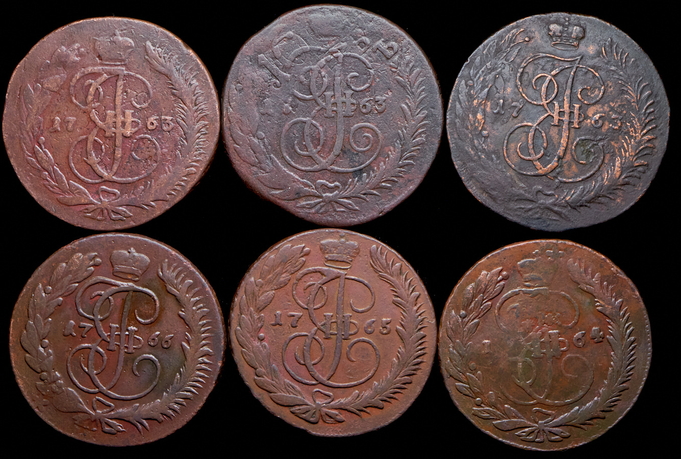 Набор из 6 монет 5 копеек 1763-1766 (Екатерина II)