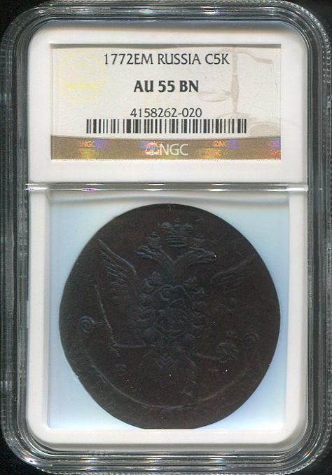 5 копеек 1772 (в слабе) ЕМ