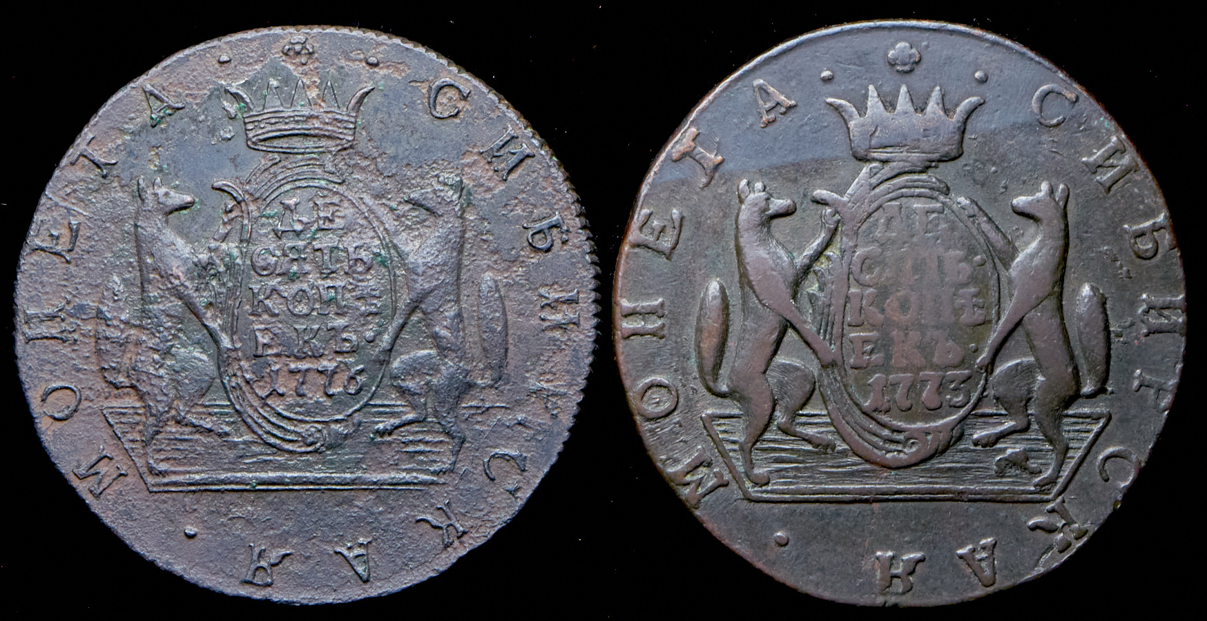Набор из 2 медных монет 10 копеек "Сибирские" КМ