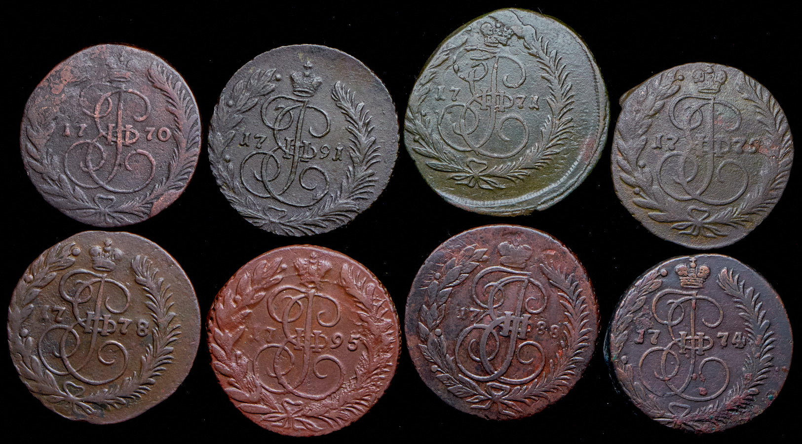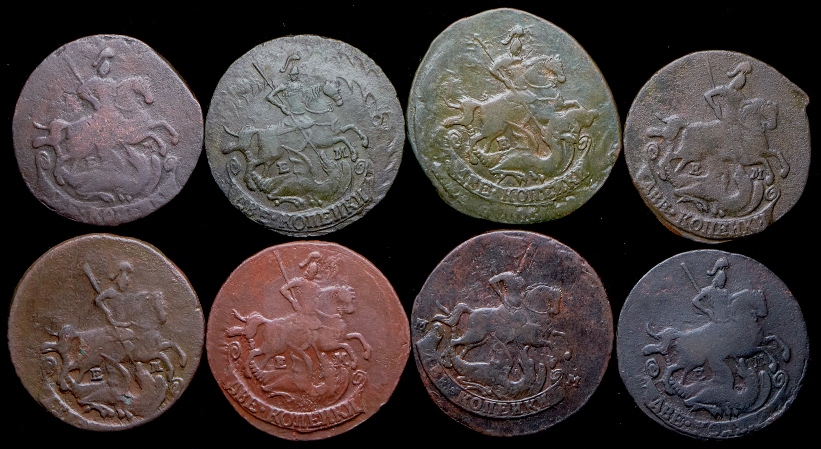 Набор из 8 медных монет 2 копейки