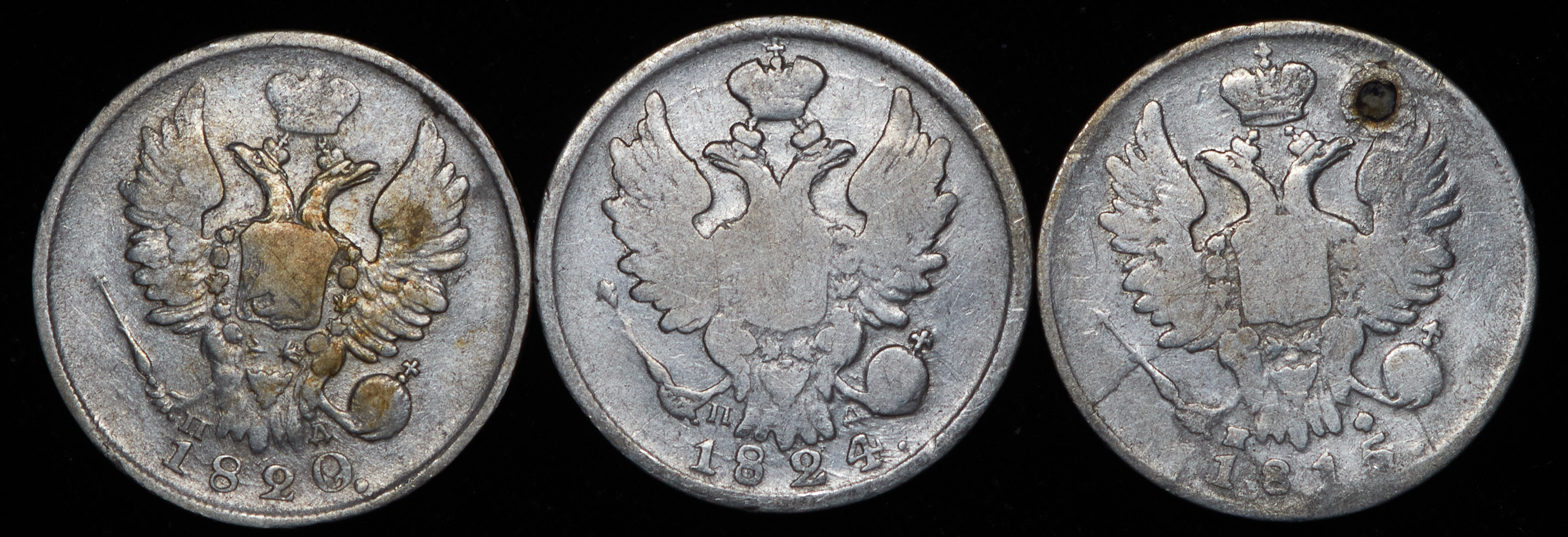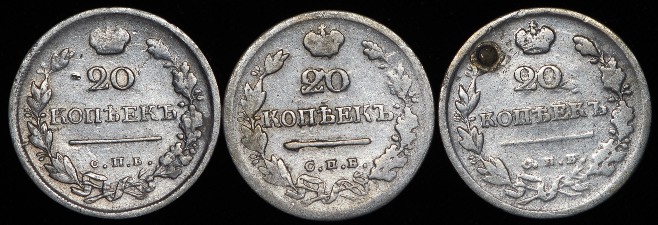 Набор из 3-х сер.монет 20 копеек (Александр I)