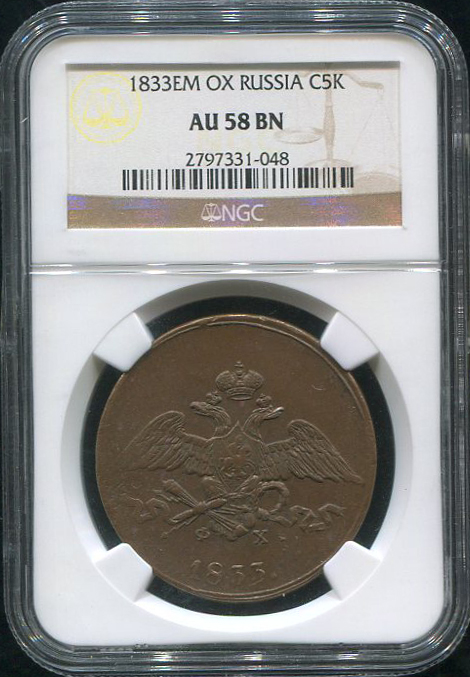 5 копеек 1833 (в слабе) ЕМ-ФХ