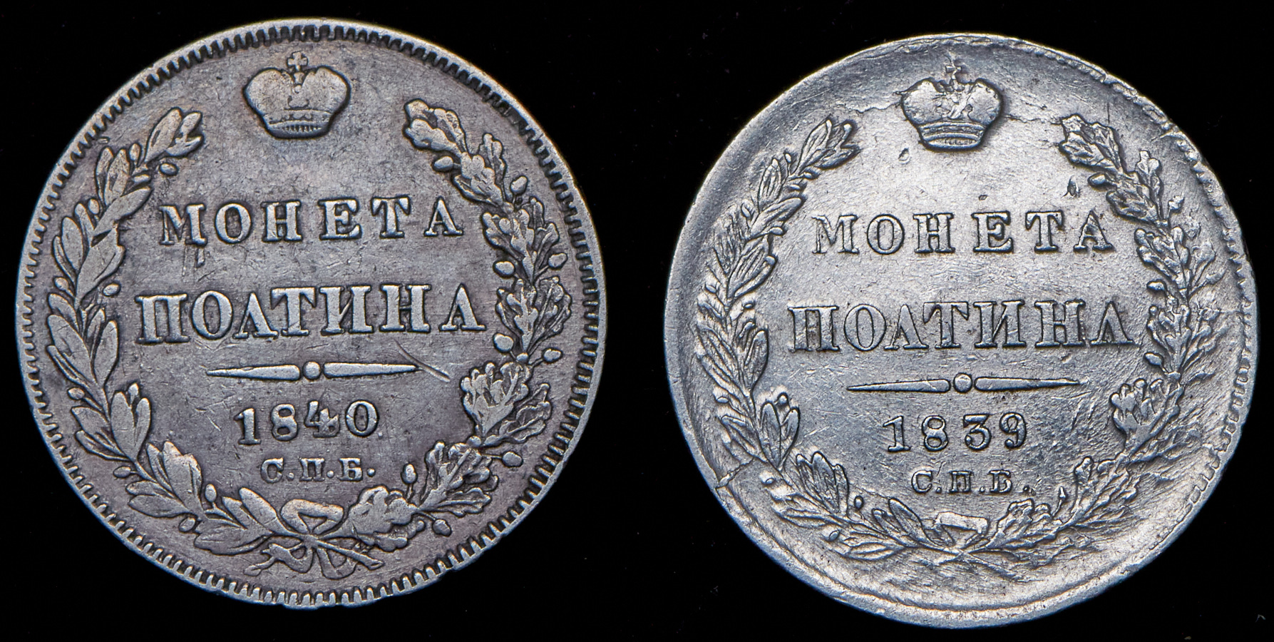 Набор из 2 сер. монет Полтина 1839-1840