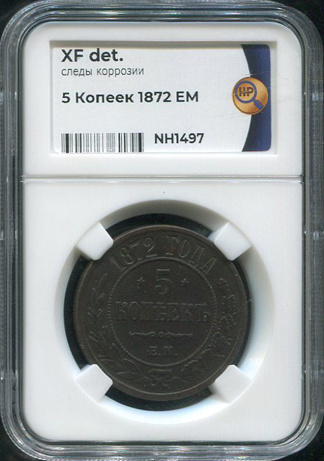 5 копеек 1872 (в слабе) ЕМ