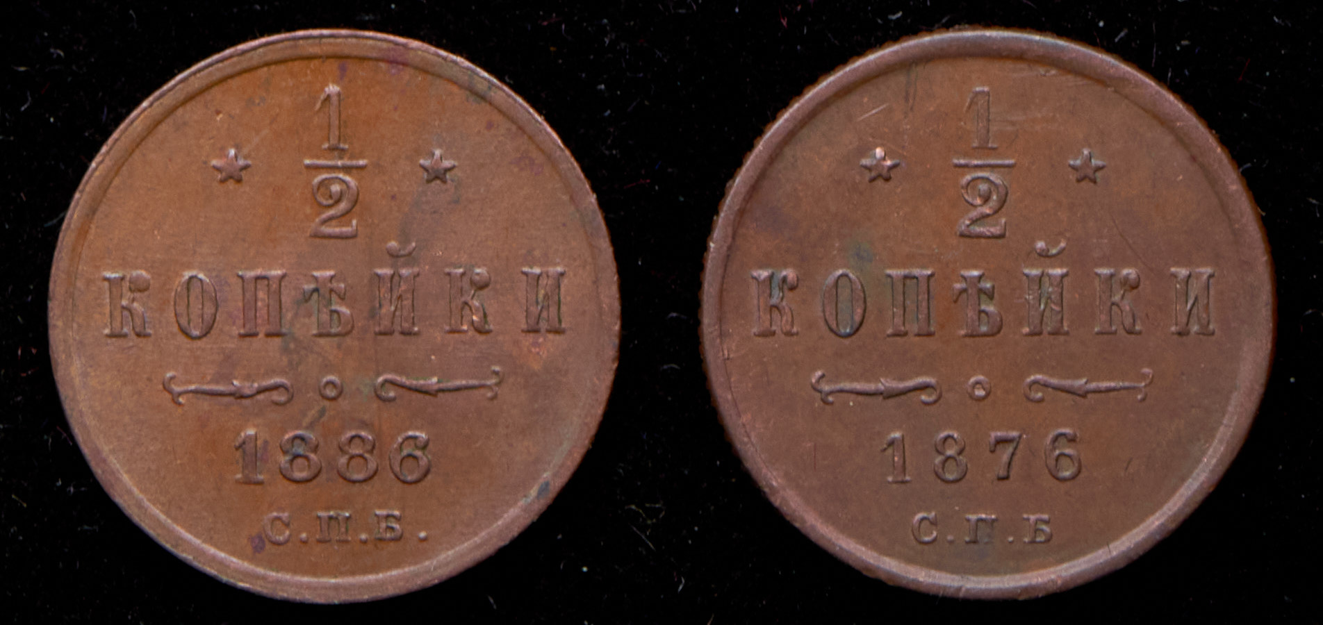 Набор из 2 медных монет 1/2 копейки 1876, 1886
