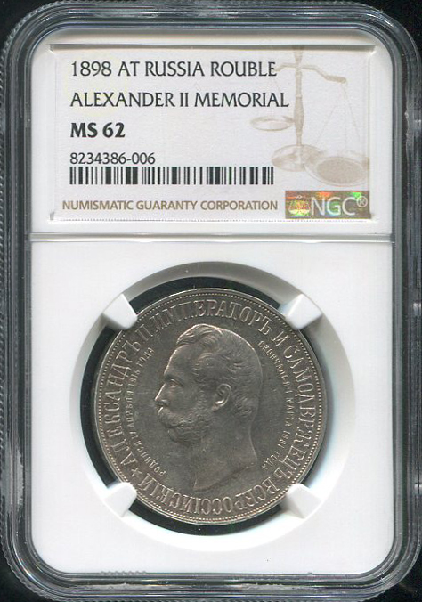 Рубль 1898 "В память открытия памятника Александру II в Москве" (в слабе) (АГ)