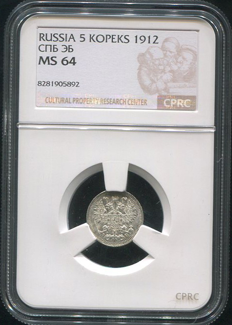 5 копеек 1912 (в слабе) СПБ-ЭБ