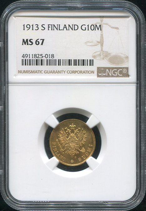 10 марок 1913 (Финляндия) (в слабе) S