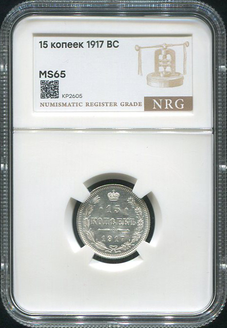 15 копеек 1917 (в слабе) ВС