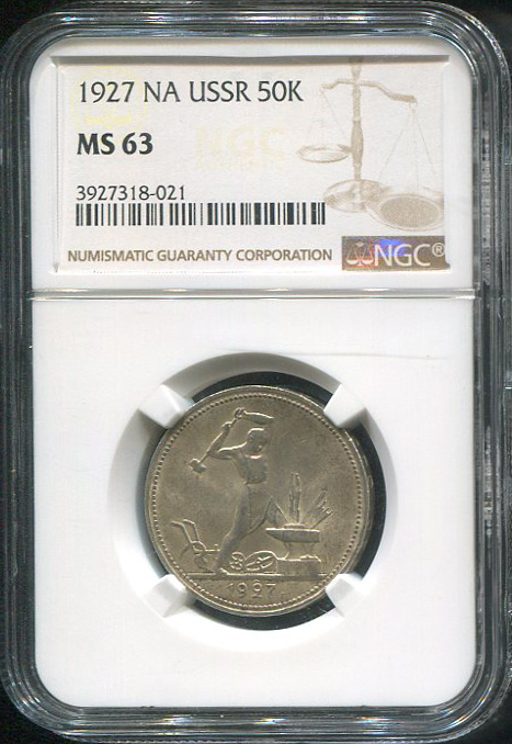 Полтинник 1927 (в слабе) (ПЛ)