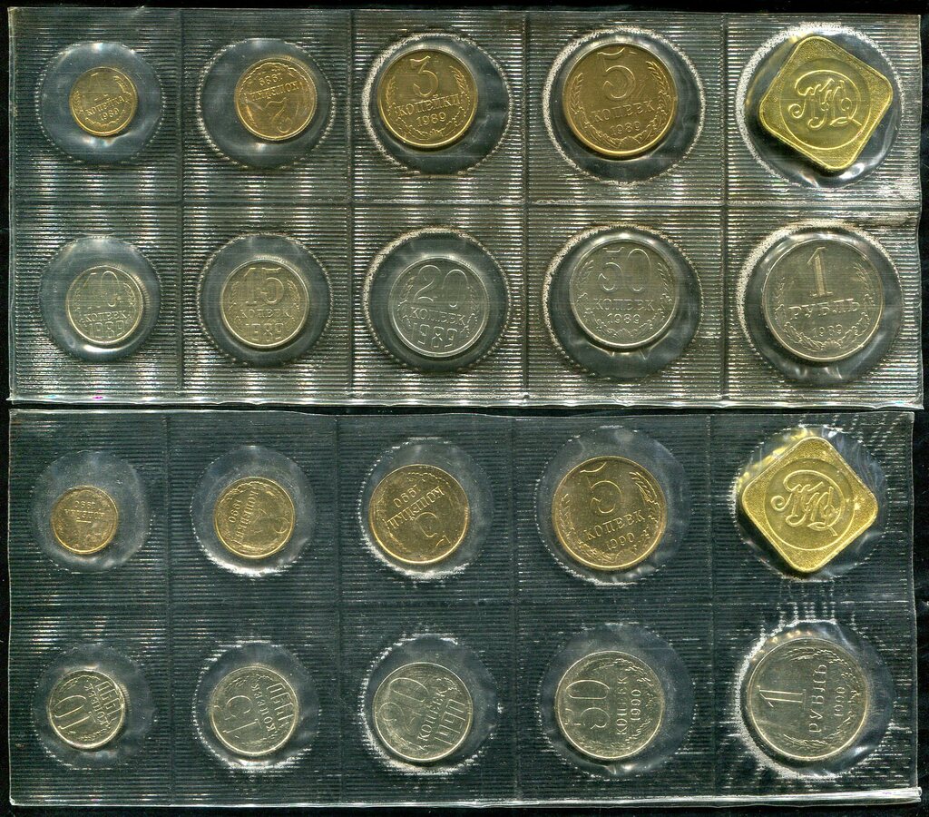 Набор из 2-х годовых наборов 1989-1990 (СССР) (в мяг. запайке) ММД