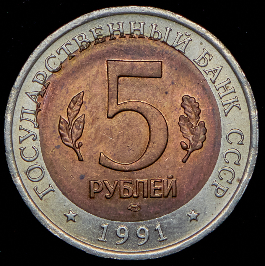 5 рублей 1991 "Красная книга" (брак) ЛМД