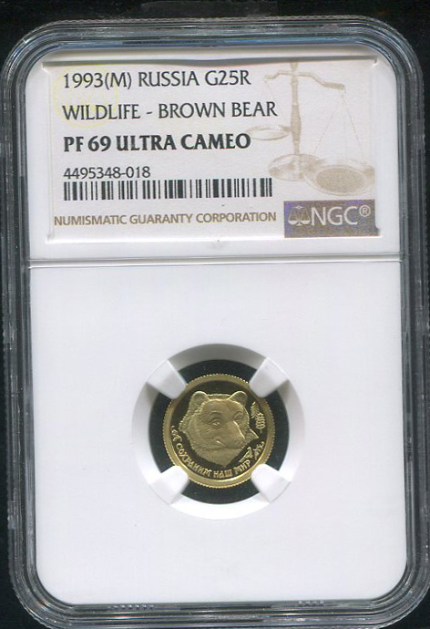 25 рублей 1993 "Бурый медведь" (в слабе) ММД