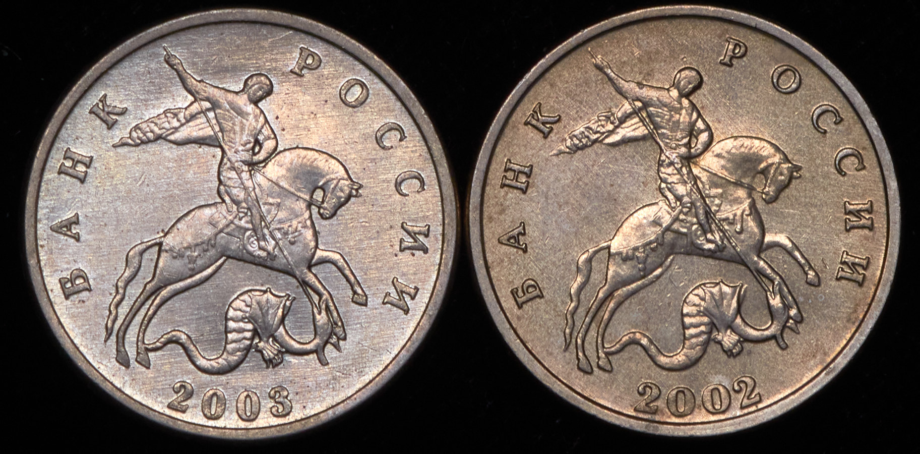 Набор из 2 монет 5 копеек 2002-2003 без букв