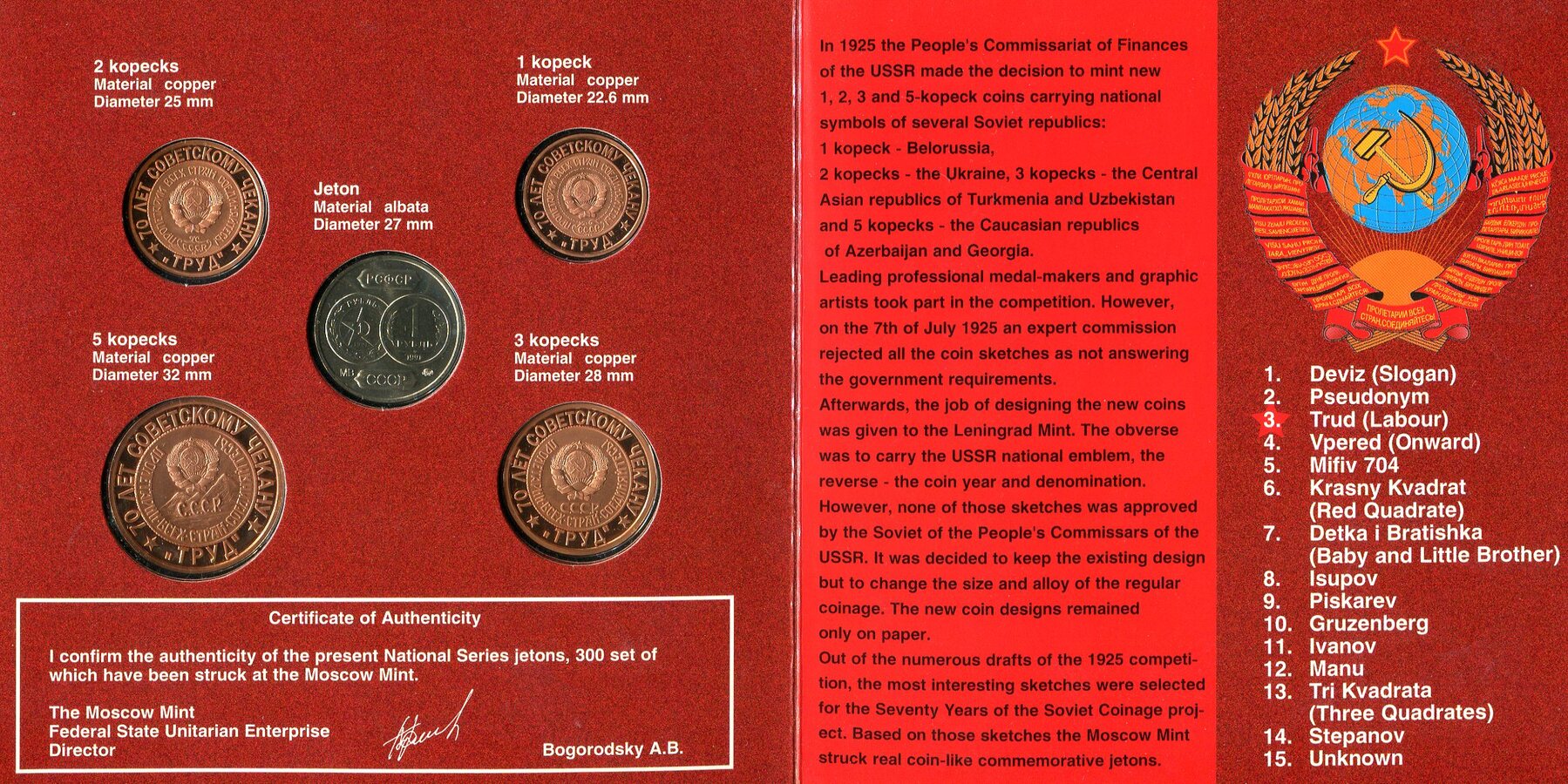 Набор из 5-ти монет "Неизвестные монеты страны советов" (в п/у)