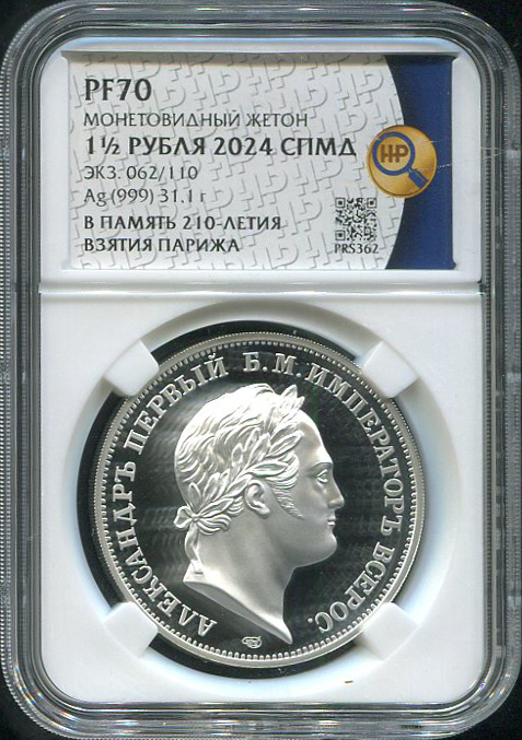 1 1/2 рубля 2024 "В память 210-летия взятия Парижа" (в слабе) СПМД