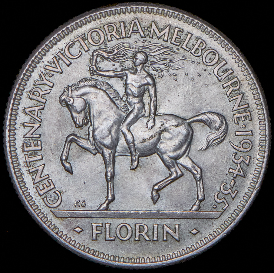 1 флорин 1935 "100 лет основанию Виктории и Мельбурна" (Австралия)