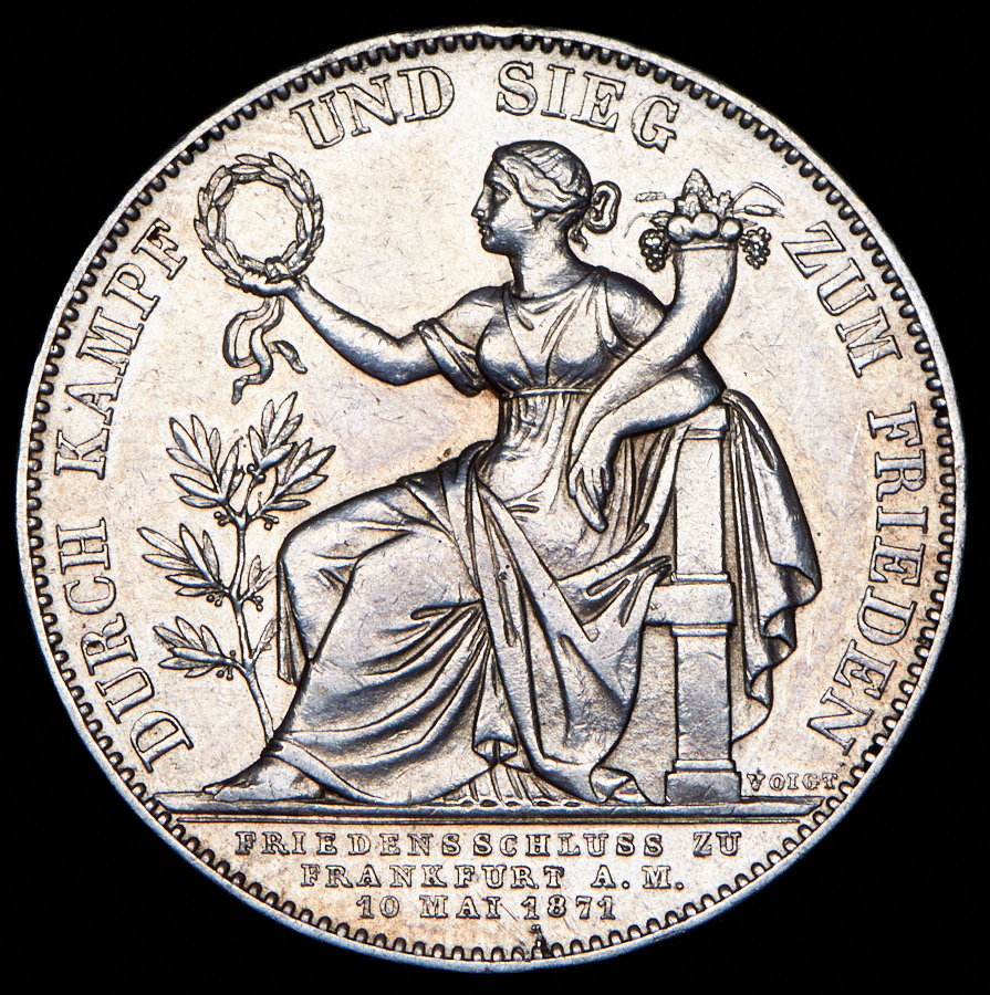 Чеканена в честь победы над французами в франко-прусской войне. Последний талер Пруссии.