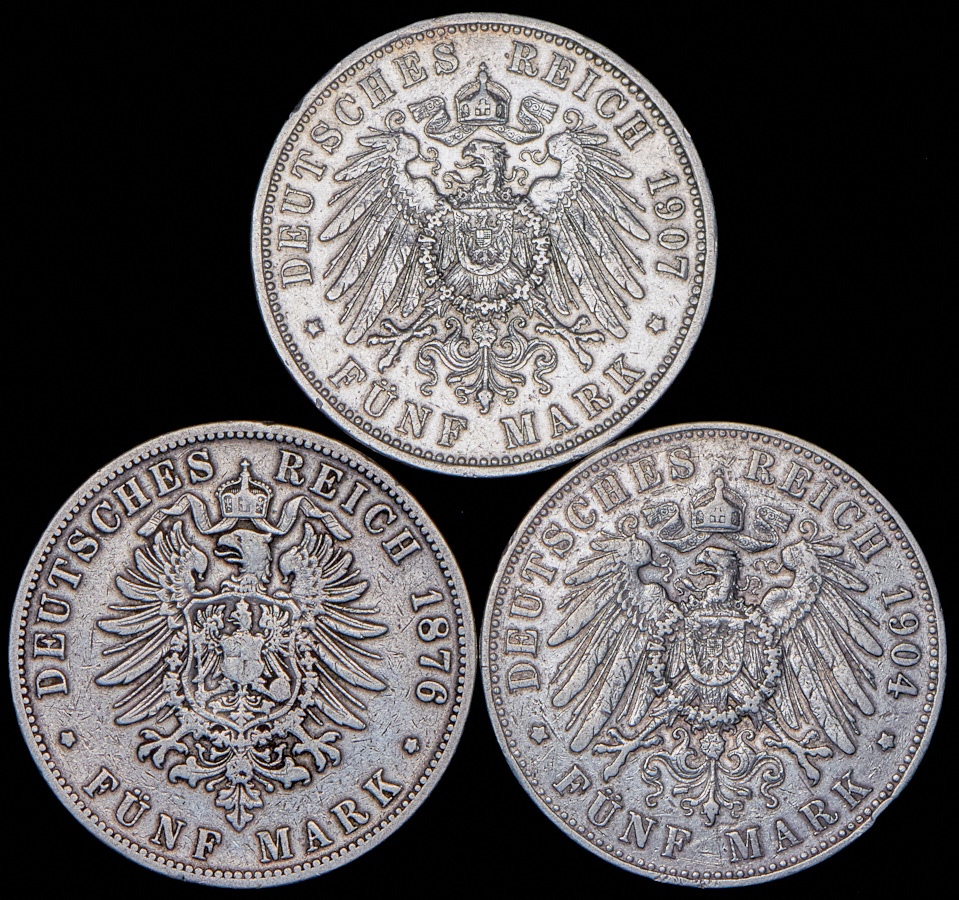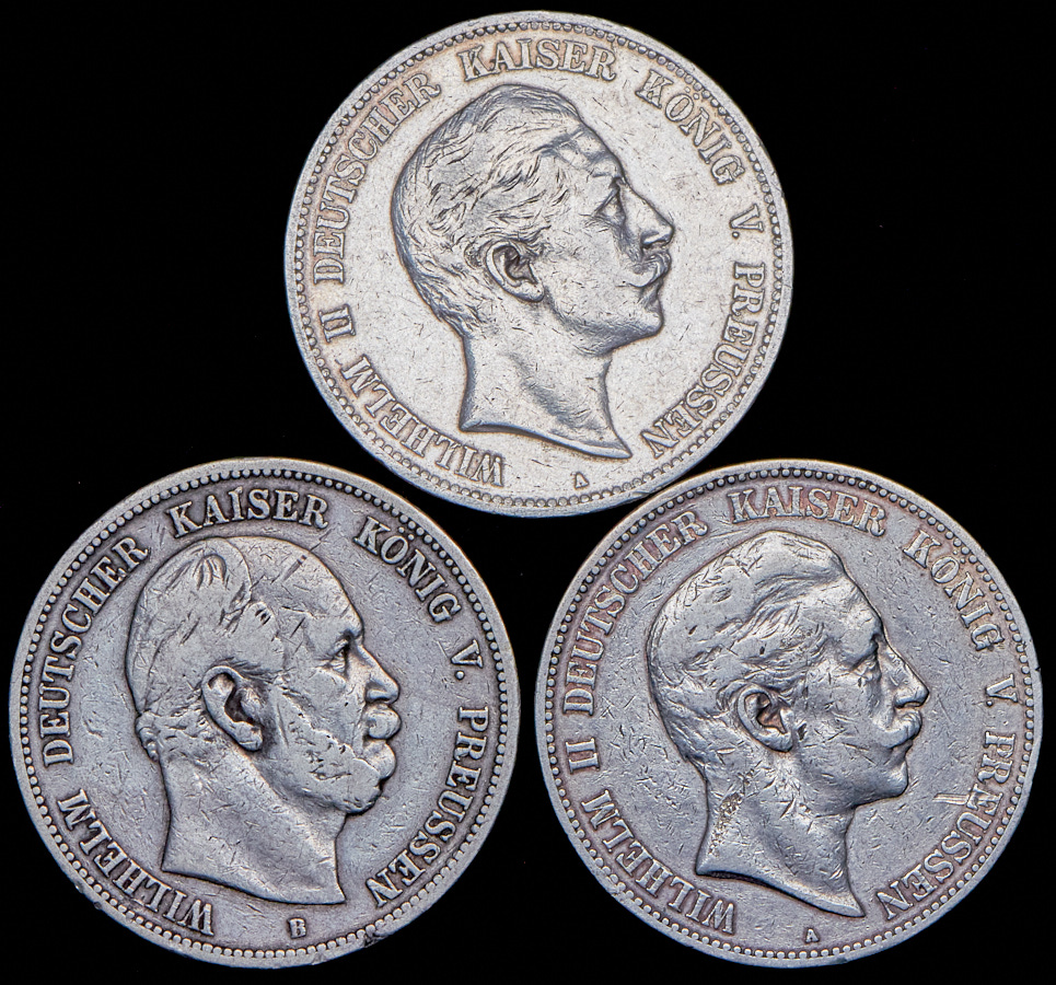 Набор из 3 сер. монет 5 марок (Пруссия)