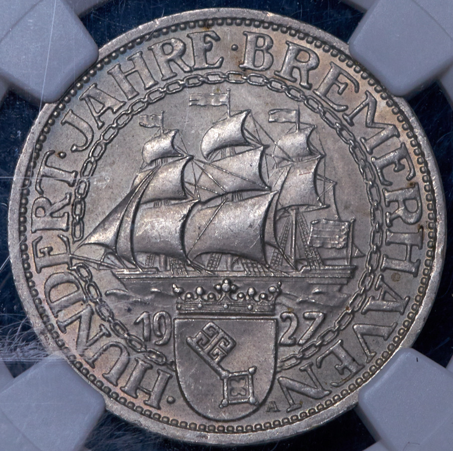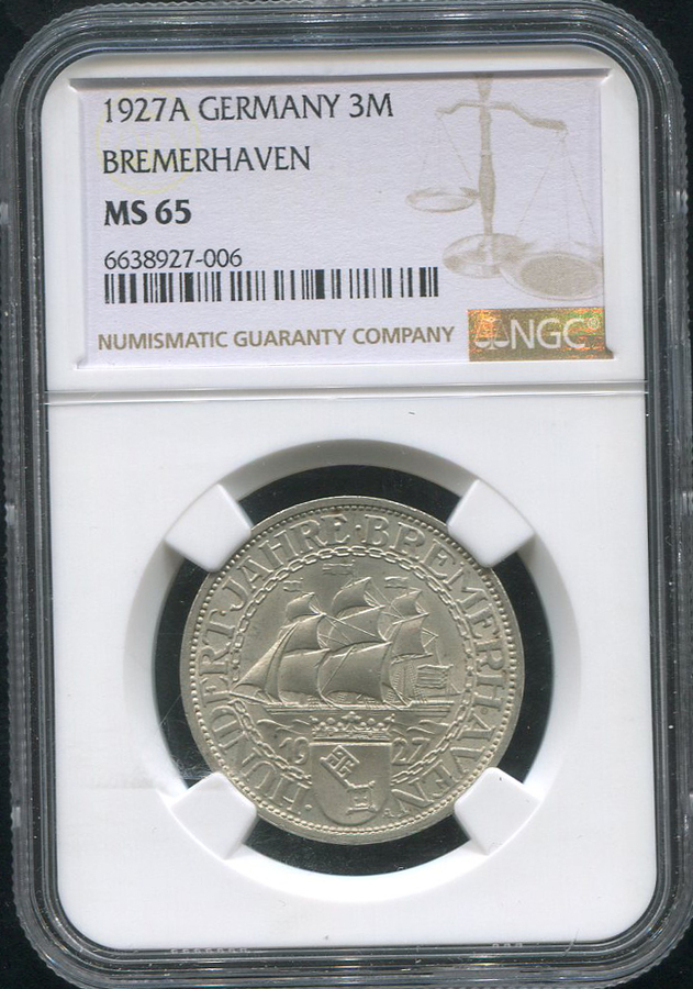 3 марки 1927 "100 лет Бремерхафену" (Германия) (в слабе) А