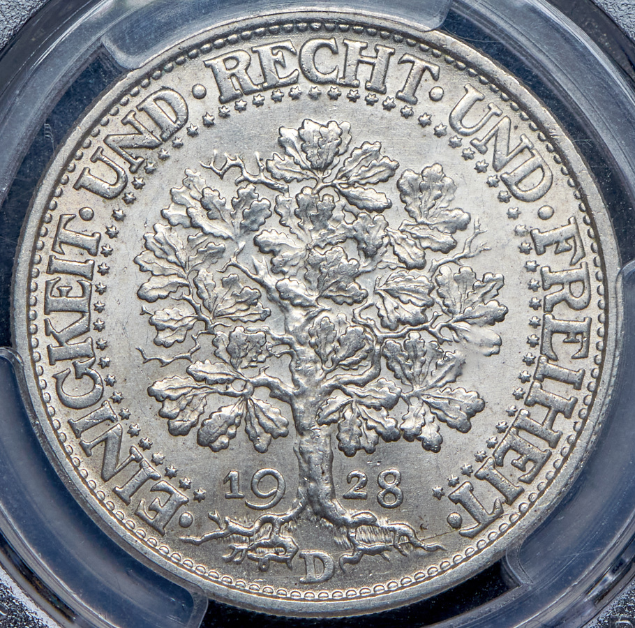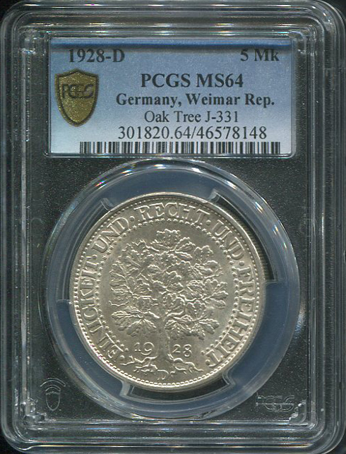 5 марок 1928 "Дуб" (Германия) (в слабе)