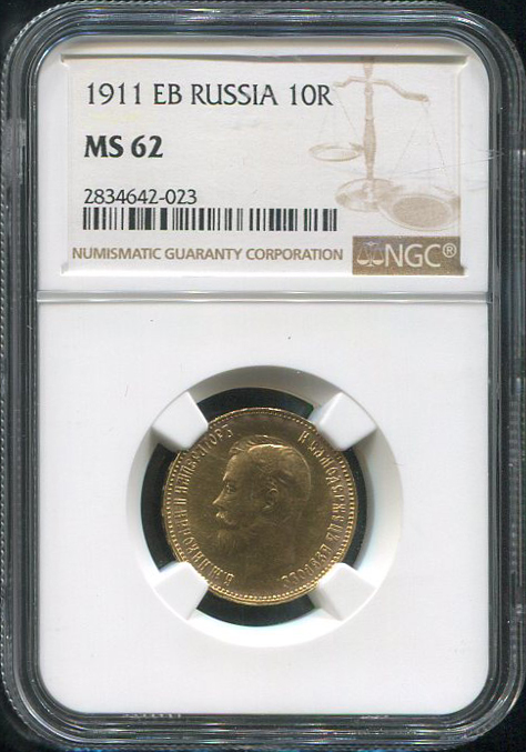 10 рублей 1911 (в слабе) (ЭБ)