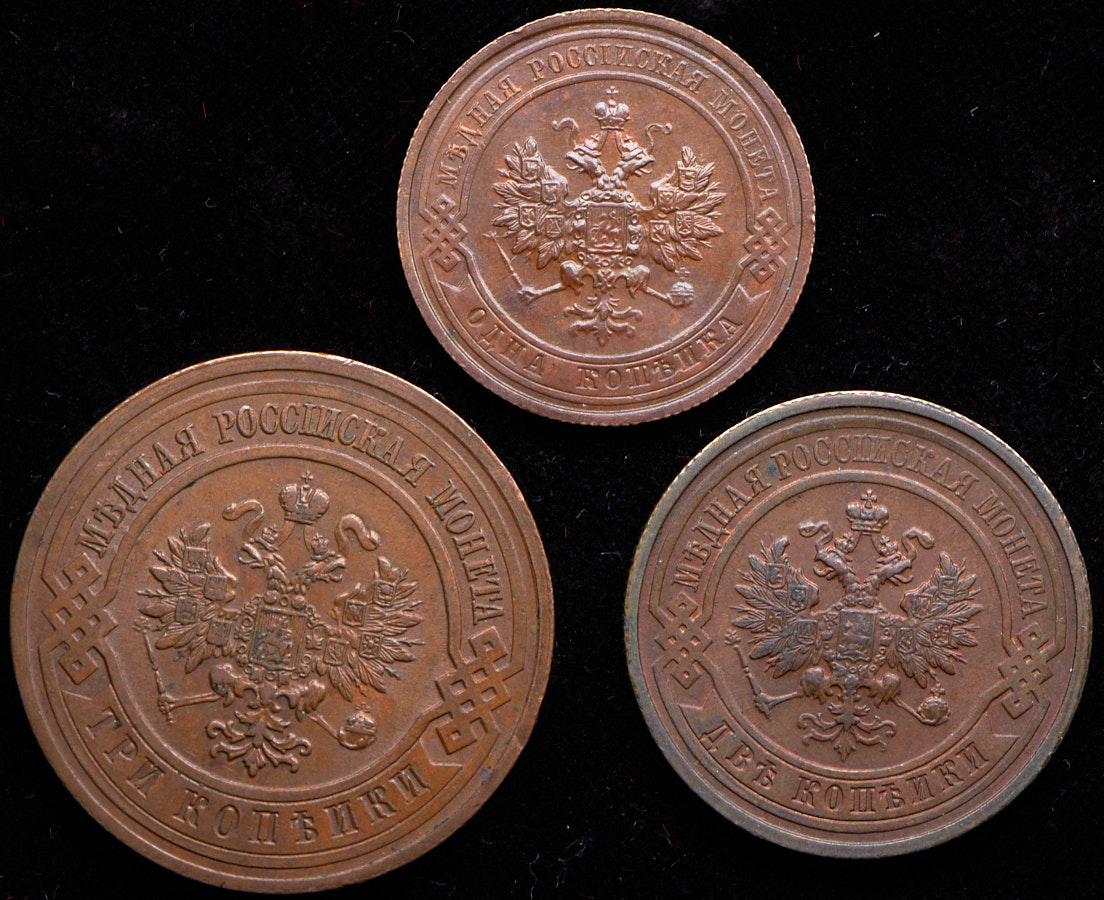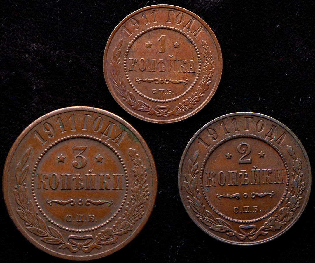 XF-AU. 1 копейка 1911. 2 копейки 1911, 3 копейки 1911