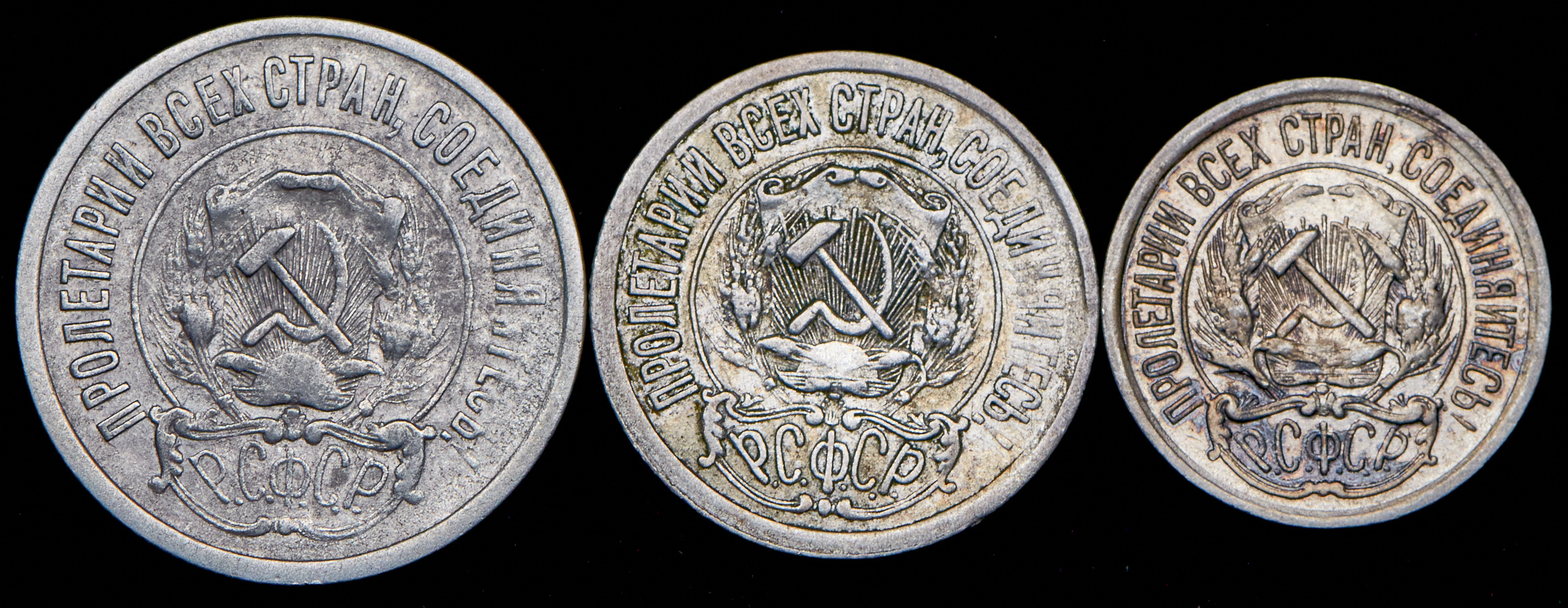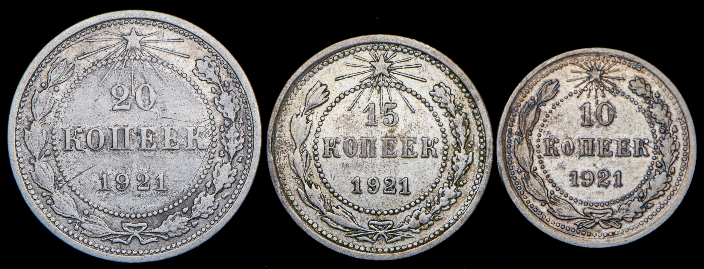 Набор из 3 сер. монет 10, 15, 20 копеек 1921